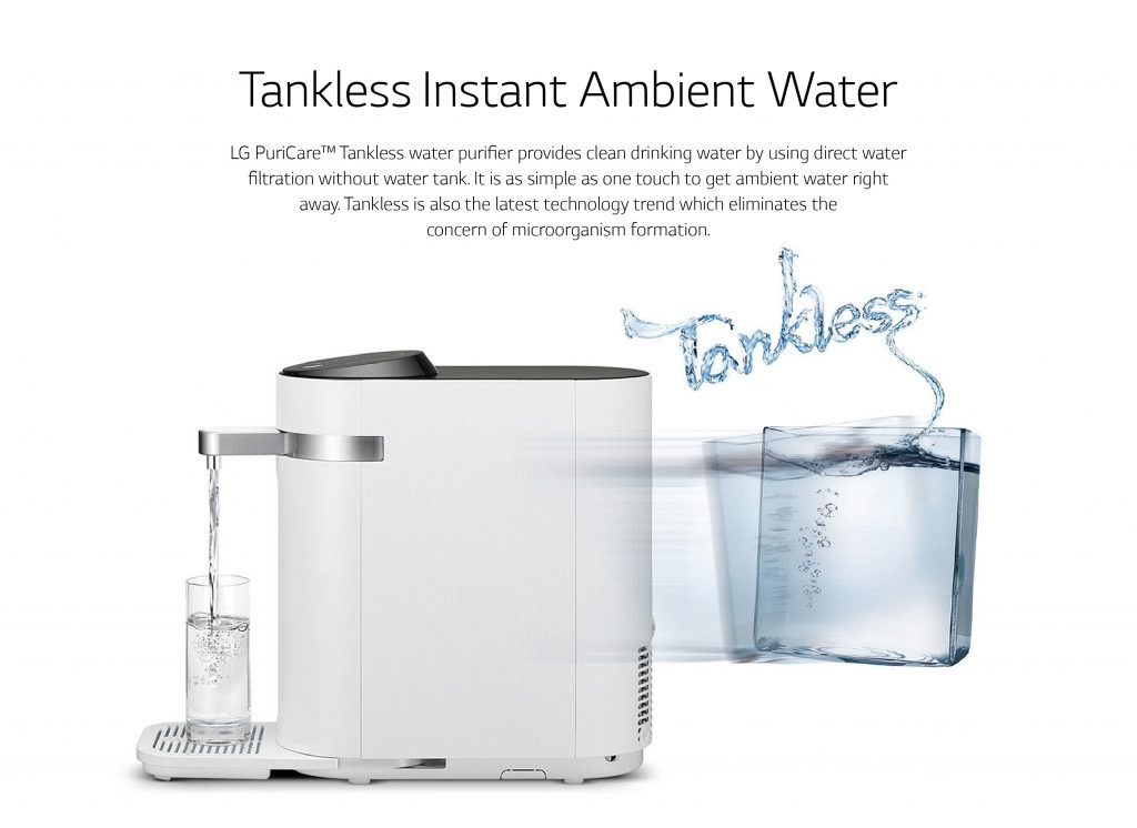 PURE WATER AT ONE TOUCH WITH LG PureCare™ TANKLESS WATER PURIFIER